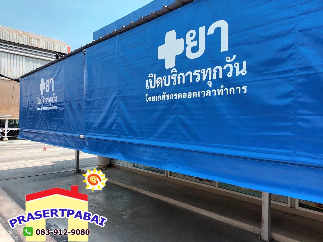 - ผ้าใบชักรอก กันสาด กันฝน กันแดด แบบสกรีนโลโก้-สติ๊กเกอร์ ตามแบบลูกค้า ร้านประเสริฐผ้าใบ&กันสาด